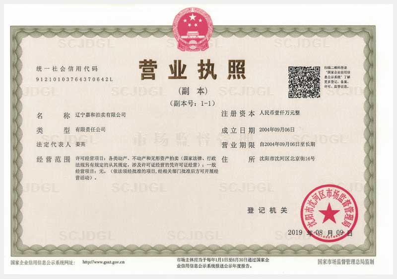 遼寧嘉和拍賣有限公司   咨詢熱線:024-22529012