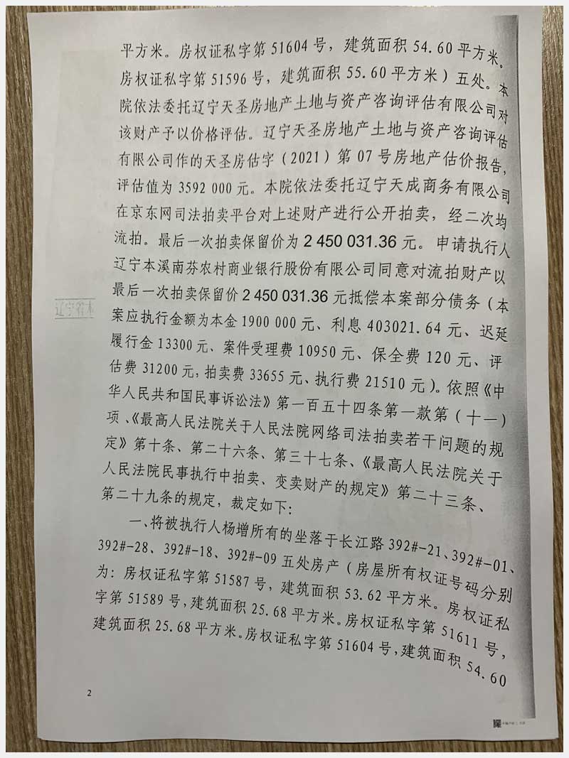 45號 本溪滿族自治縣長江路392#-01、09、18、21、28房產