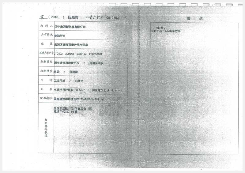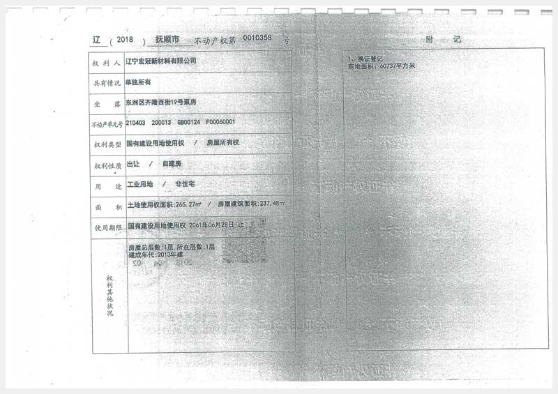 名稱:撫順市東洲區齊隆西街19號房產及土地使用權 面積:房產:13454.25㎡、土地:48237㎡ 瀏覽次數:1038