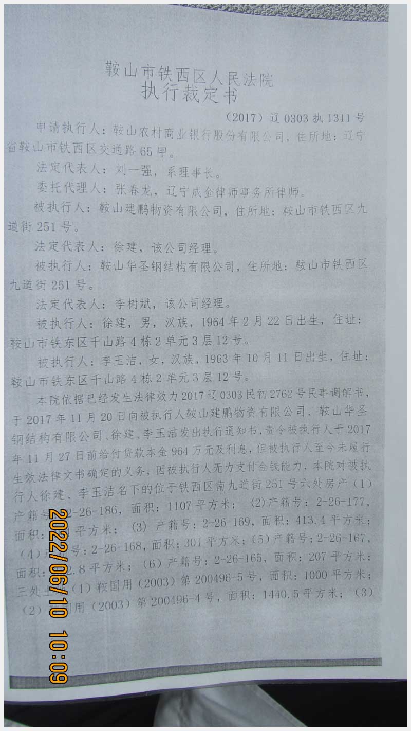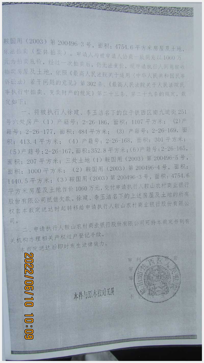 名稱:鞍山市鐵西區南九道街251號房產及土地使用權 面積:房產:2865.2㎡、土地:7195.1㎡ 瀏覽次數:975