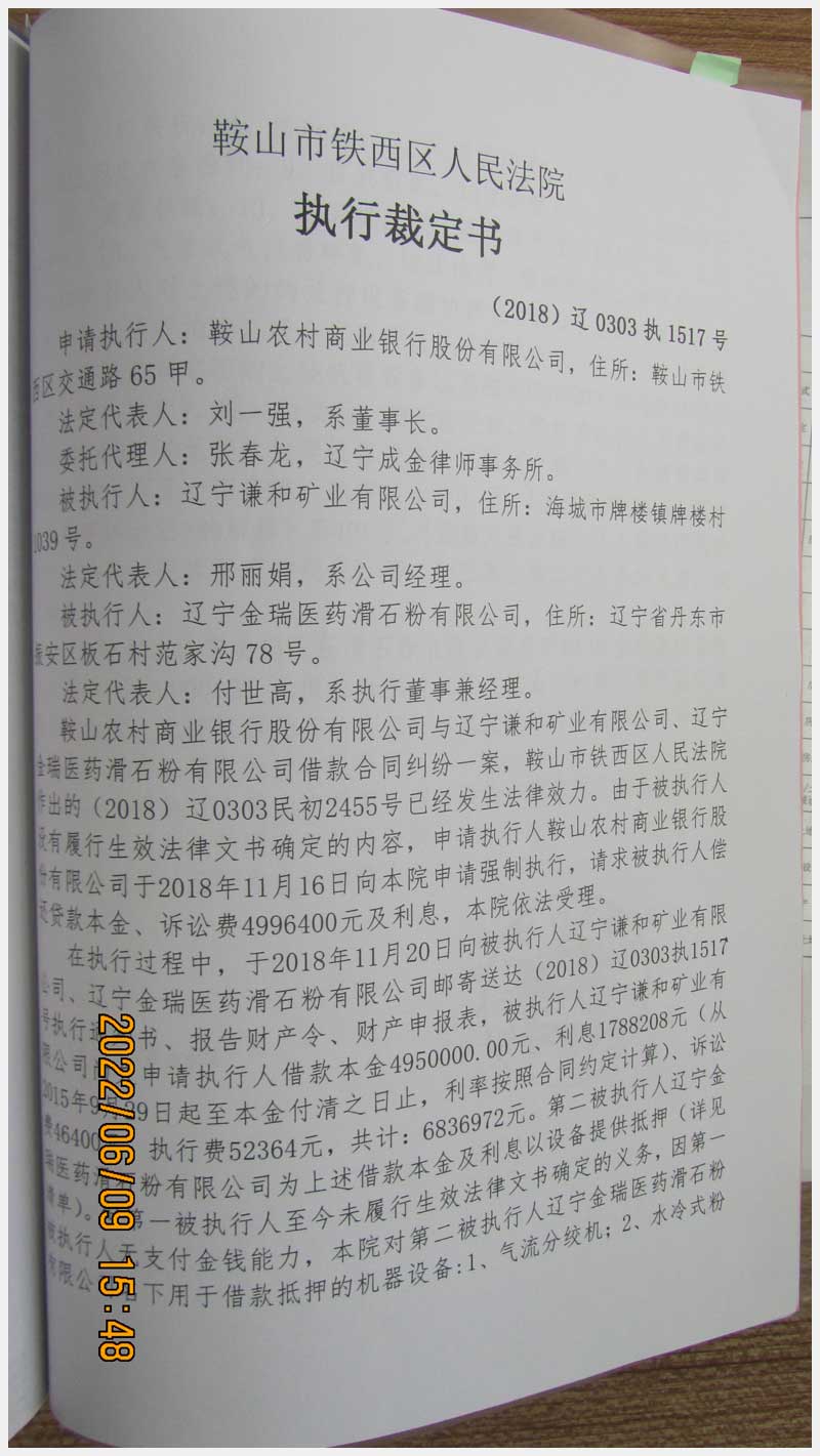 地址:遼寧謙和礦業有限公司院內 標的號:93