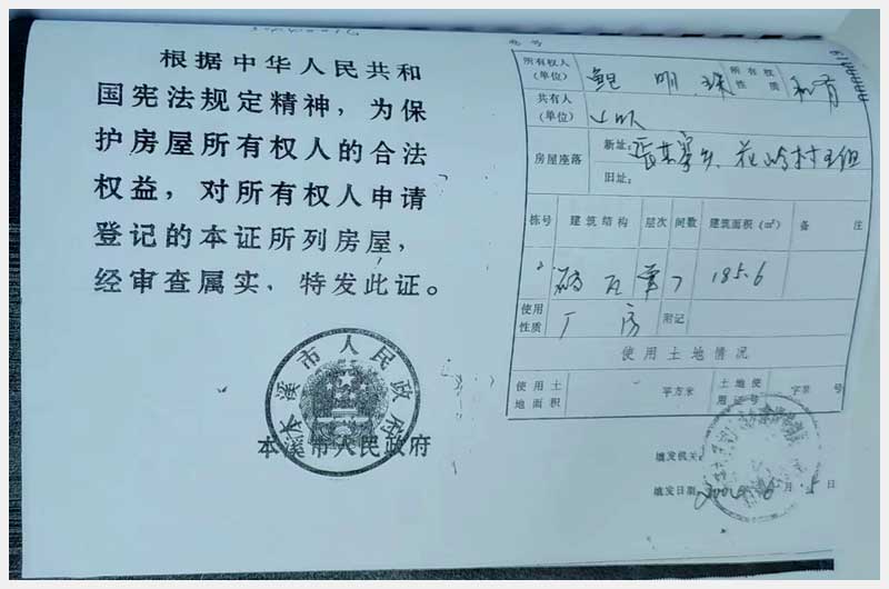 6號 本溪市溪湖區張其寨鄉花嶺村5組房產及土地使用權