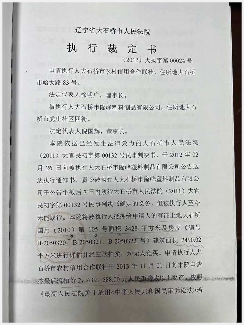 1號 大石橋市虎莊鎮(zhèn)四村房產及土地使用權