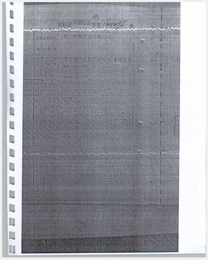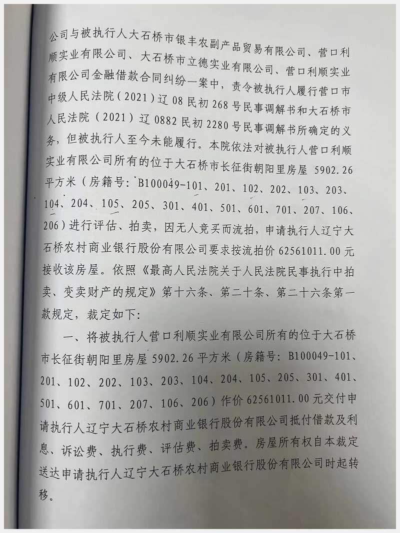 地址:大石橋市長征街朝陽里豪隆世家 標的號:8