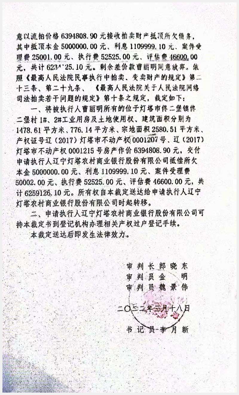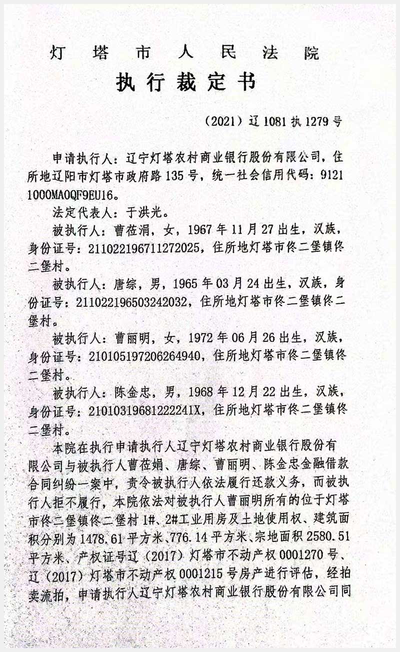 名稱:燈塔市佟二堡鎮佟二堡村1#、2#房產及土地使用權 面積:房產:2,254.75㎡;土地:2,580.51㎡ 瀏覽次數:321