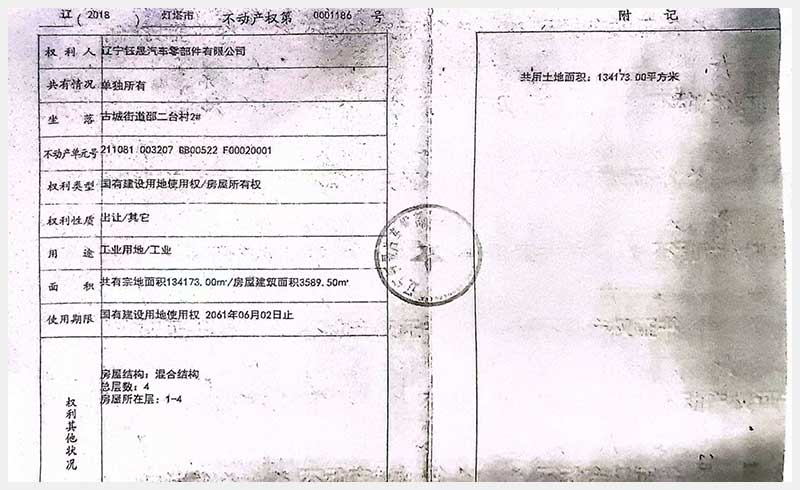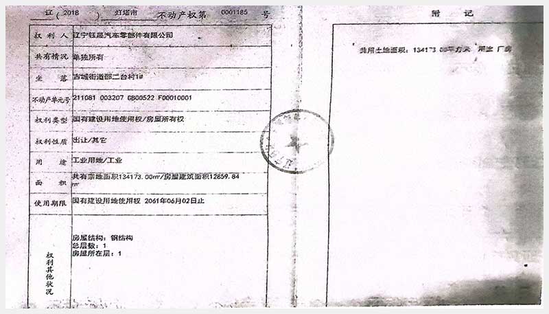 名稱:燈塔市鐵西工業園區古城街道邵二臺村房產及土地使用權 面積:房產:19,551.64㎡;土地:134,173㎡ 瀏覽次數:314