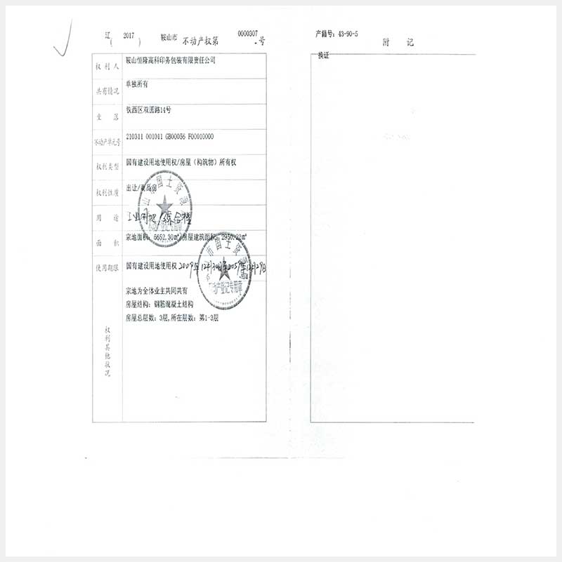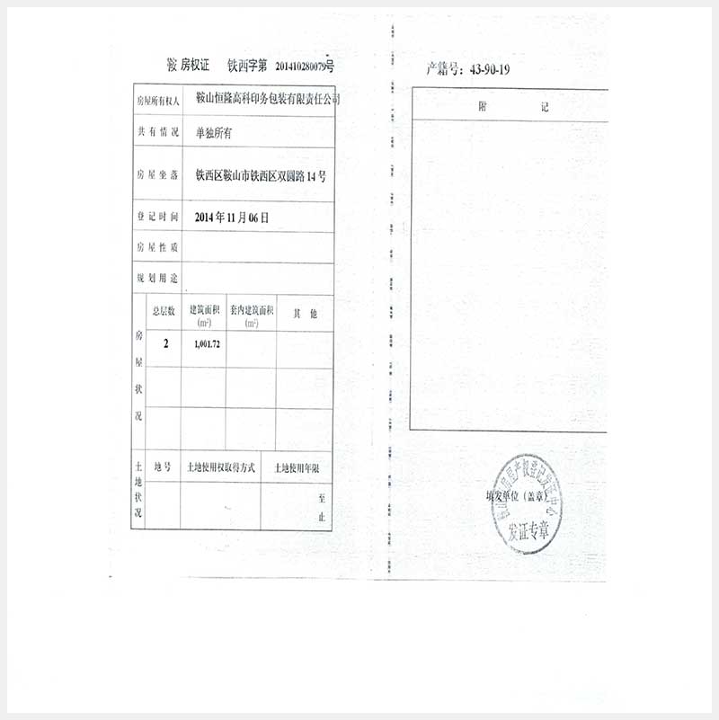 名稱:鞍山市鐵西區雙圓路14號房產及土地使用權 面積:房產:4476.74㎡;土地:5652.3㎡ 瀏覽次數:88