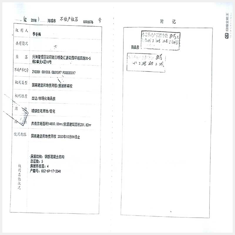 名稱:海城市興海管理區站前街三明委匯源花園環城西路30-5棟2單元4層16號房產 面積:231.82㎡ 瀏覽次數:127