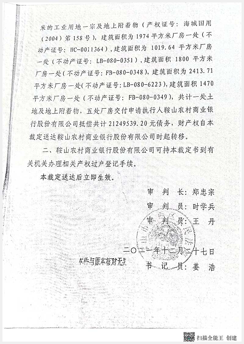 名稱:海城市毛祁鎮(zhèn)山后村房產(chǎn)及土地使用權(quán) 面積:房產(chǎn):14539.74㎡;土地:9300㎡ 瀏覽次數(shù):229