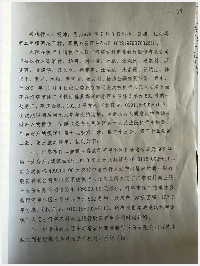名稱:燈塔市佟二堡鎮際盛紫郡河畔小區8號樓3單元502號房產 面積:102.3㎡ 瀏覽次數:18