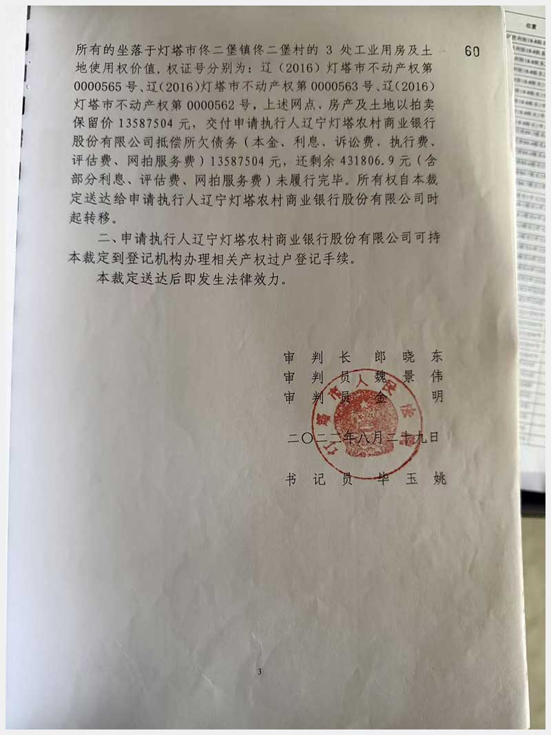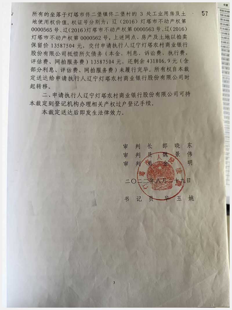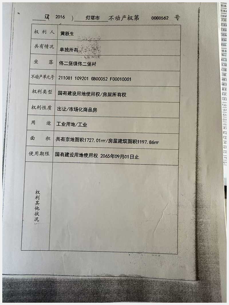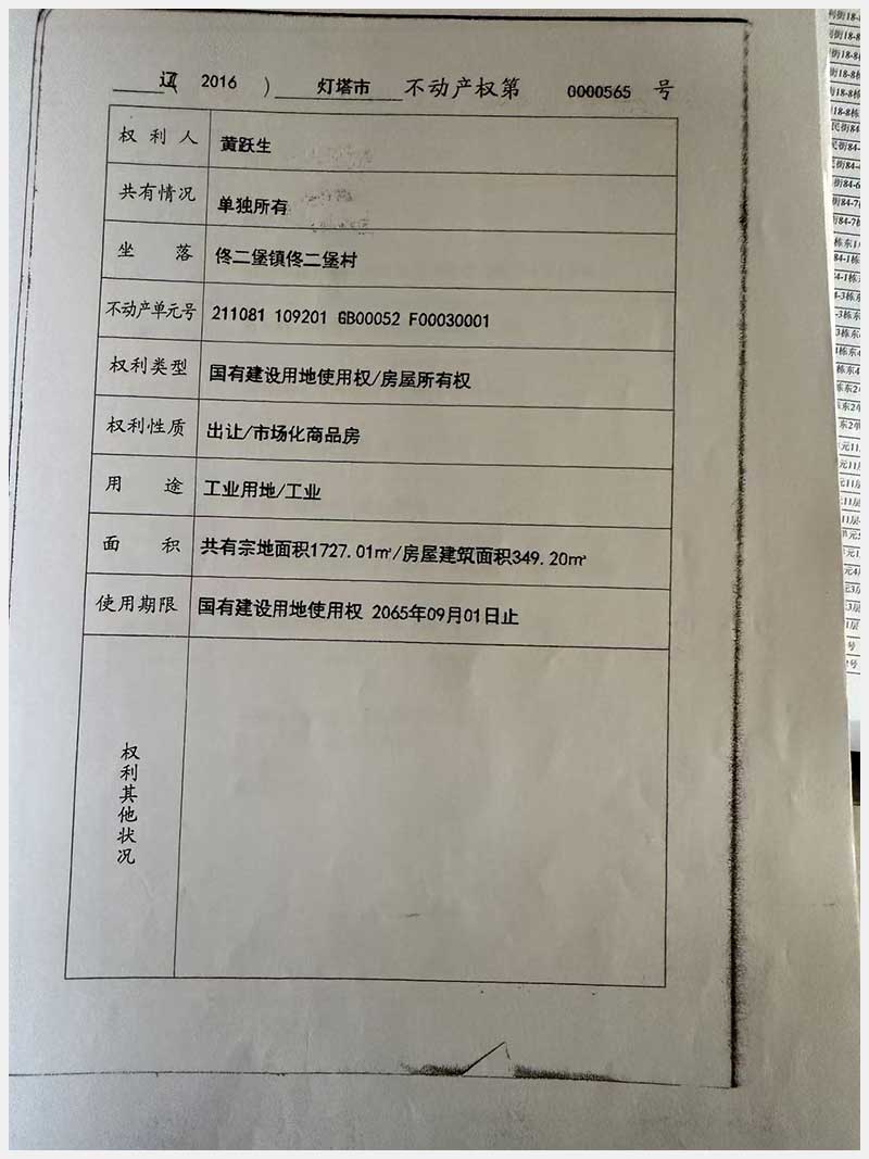 名稱:燈塔市佟二堡鎮佟二堡村房產及土地使用權 面積:房產:1954.46㎡;土地:1720.13㎡ 瀏覽次數:21