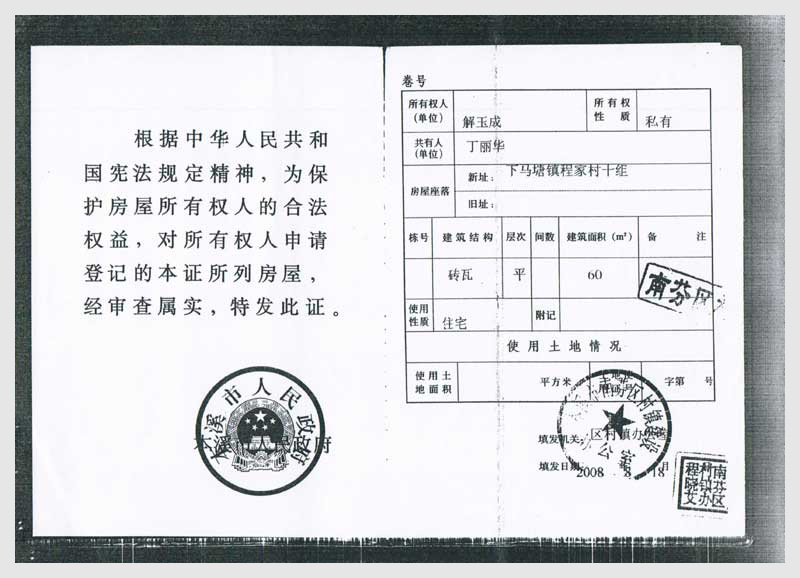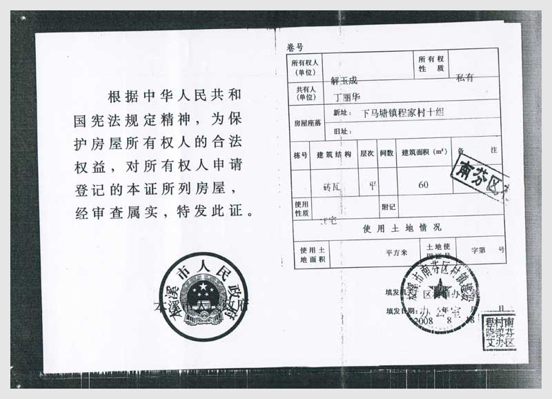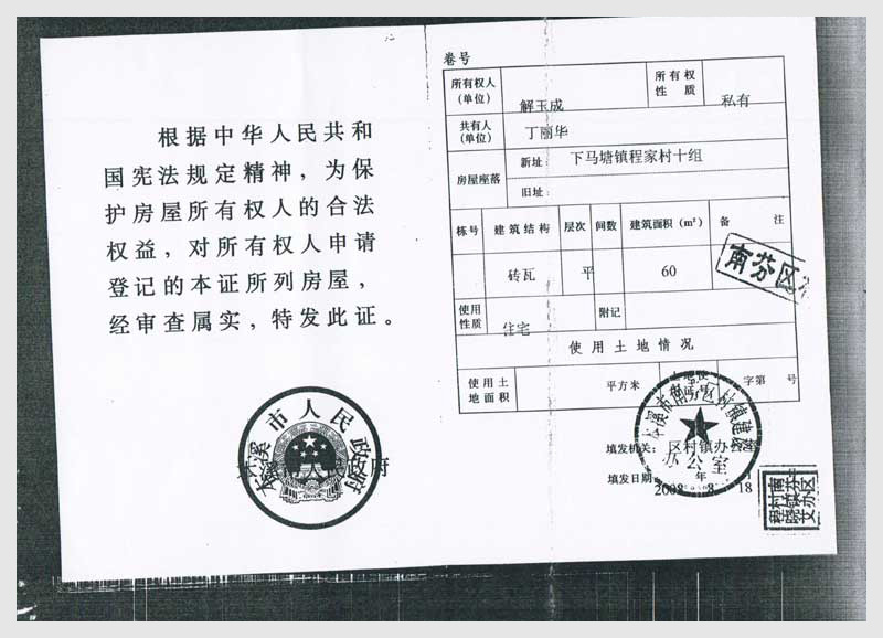 名稱:南芬區(qū)下馬塘鎮(zhèn)程家村十組房產(chǎn)10處 面積:共600㎡ 瀏覽次數(shù):2366