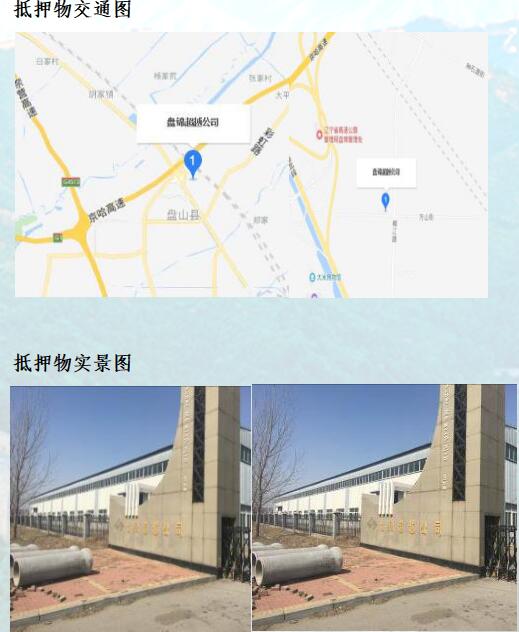 抵押物位于盤錦市雙臺子區(qū)盤山縣,交通便利。抵押房產位于抵押土地之上,抵押房產的狀態(tài)較好,從外部觀察為九成新,用途為辦公樓、倉儲等。抵押土地為國有出讓工業(yè)用地,狀態(tài)較好,中間部份大面積空置,地型寬闊規(guī)整,升值空間較大。