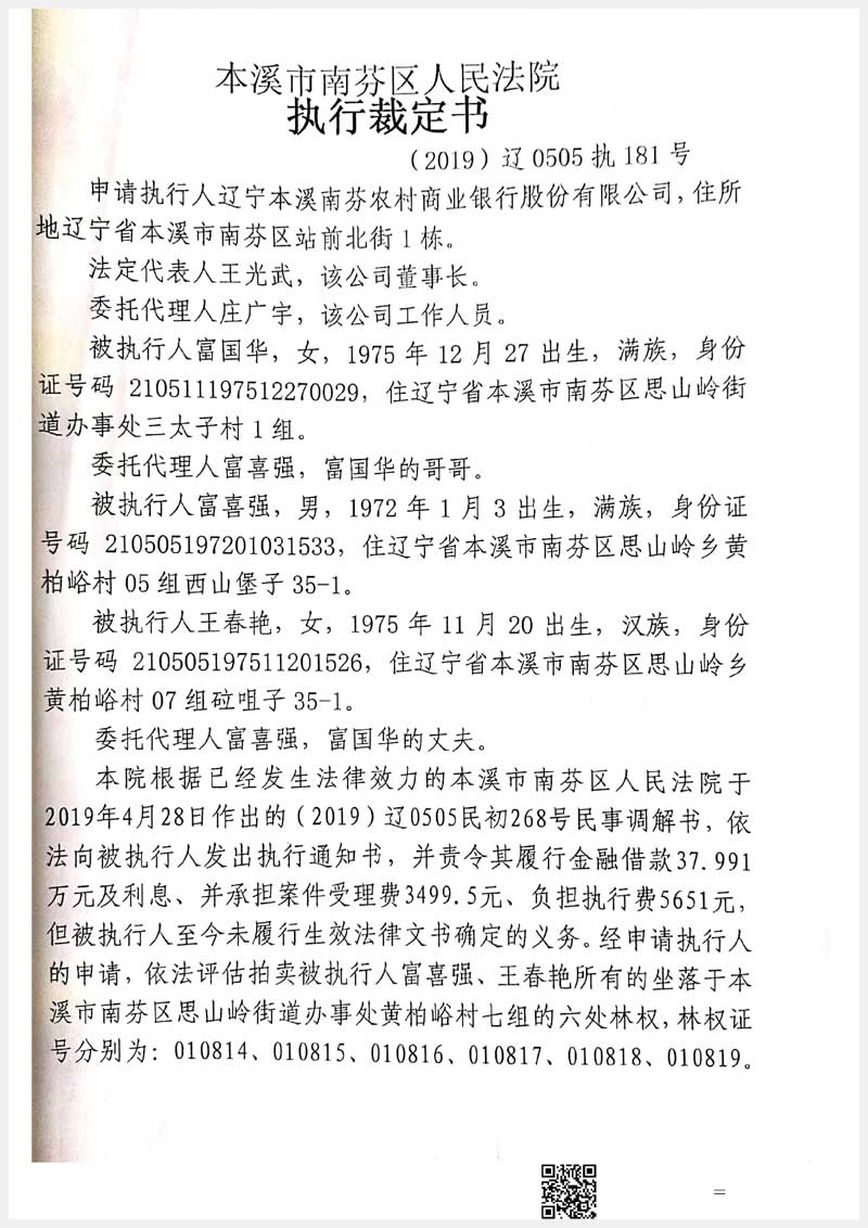 地址:南芬區(qū)黃柏村頭道溝 標的號:33