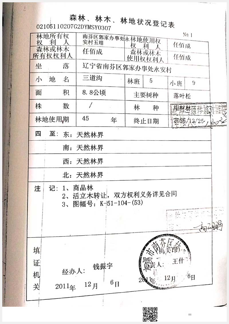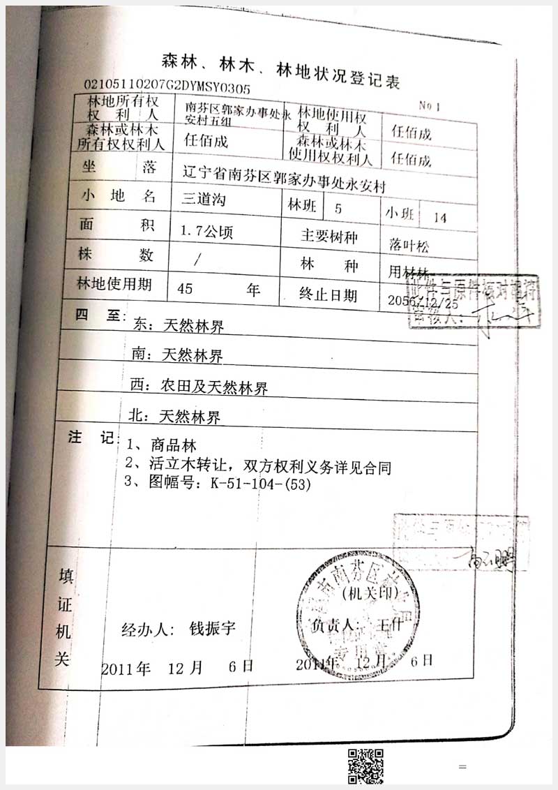名稱:南芬區(qū)郭家街道辦事處永安村林權(quán) 面積:15.7公頃 瀏覽次數(shù):1480