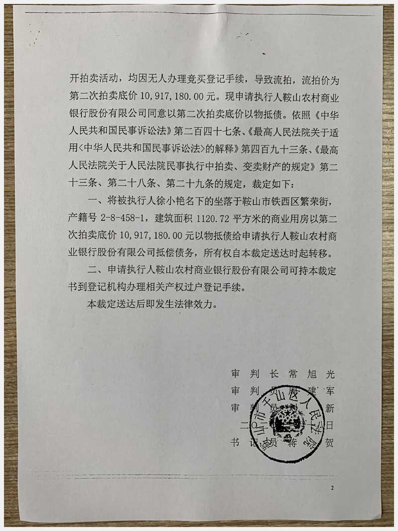 地址:鞍山市鐵西區繁榮街 標的號:52