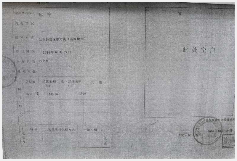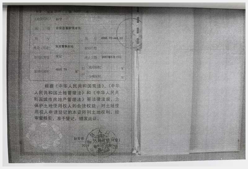 地址:臺(tái)安縣富家鎮(zhèn)本街 標(biāo)的號(hào):67