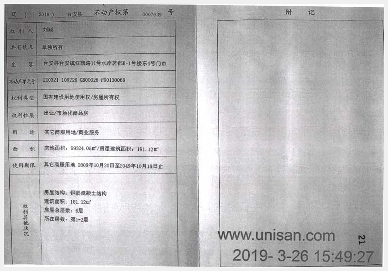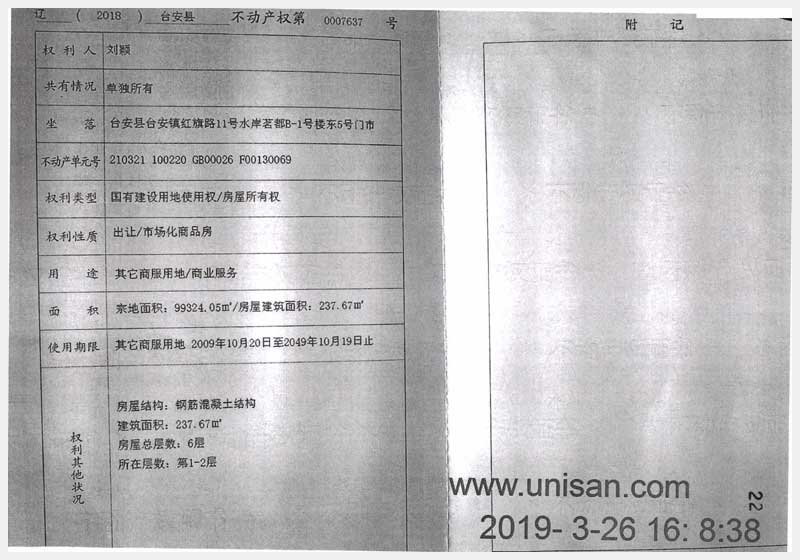 名稱:臺安縣臺安鎮紅旗路11號水岸茗都B-1號樓房產 面積:東4號:181.12㎡、東5號:237.67㎡ 瀏覽次數:1066