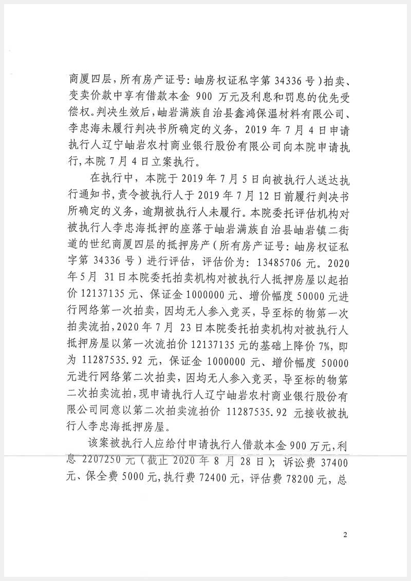 地址:岫巖縣岫巖鎮(zhèn)二街道世紀(jì)商廈 標(biāo)的號(hào):4