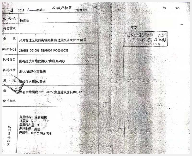 地址:海城市興海管理區興海大街39-S1號房產 標的號:152