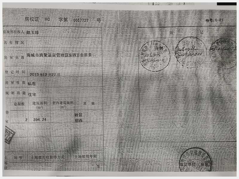 名稱:海城市騰鰲溫泉管理區(qū)東四方臺居委會房產 面積:394.24㎡ 瀏覽次數:1305