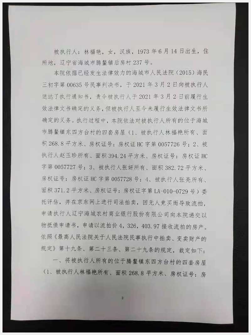 地址:海城市騰鰲溫泉管理區(qū)東四方臺居委會 標的號:153