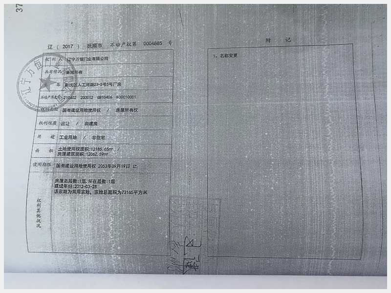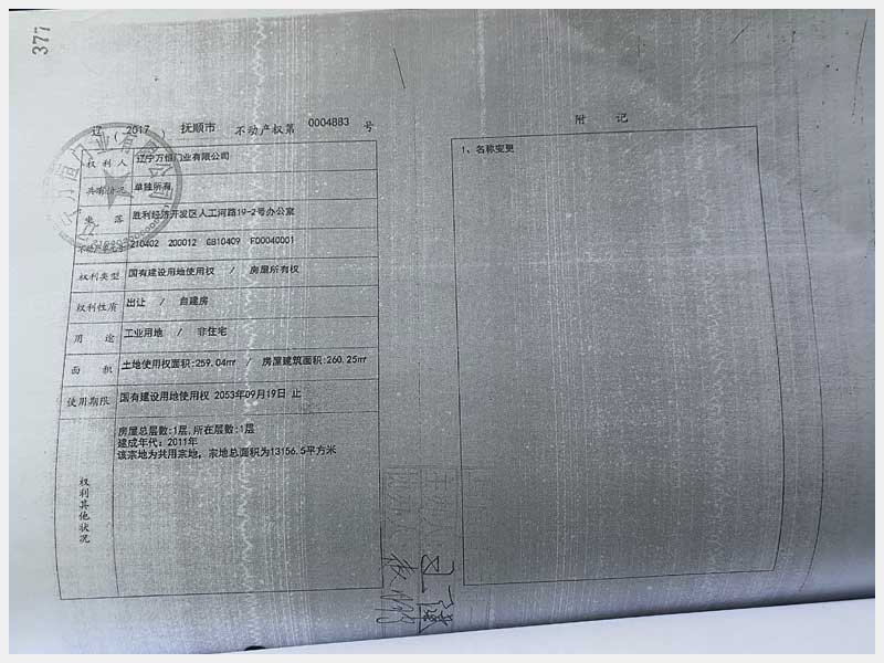 地址:撫順市勝利開發(fā)區(qū)工業(yè)園勝利二路 標(biāo)的號:18