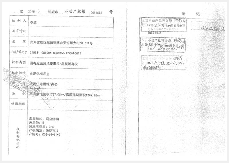 名稱:海城市興海管理區站前街站北委海州大街68-S11號房產3處 面積:有證:627.28㎡、1209.96㎡;無證:310㎡ 瀏覽次數:1204