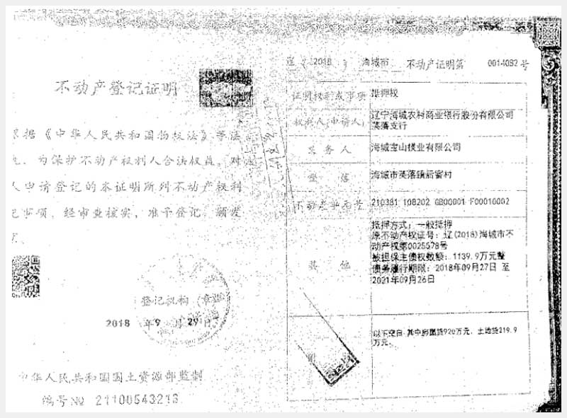 181號 海城市英落鎮后窨村房產、土地使用權及機器設備