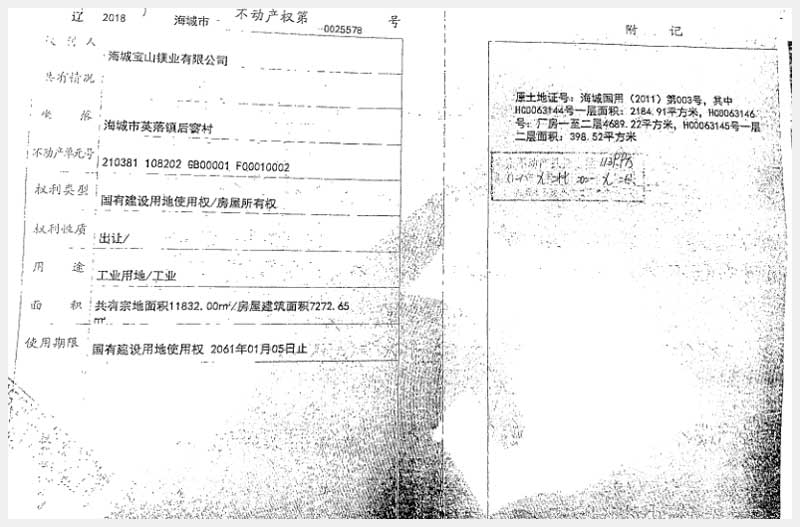 名稱:海城市英落鎮后窨村房產、土地使用權及機器設備 面積:房產:有證:7272.65㎡,無證:5963.33㎡;土地:11832㎡;設備:776套 瀏覽次數:1115