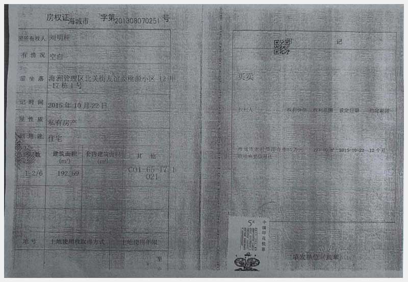 名稱:海城市海州管理區北關街友誼委桃園小區12甲-17棟1號房產 面積:192.59㎡ 瀏覽次數:1285