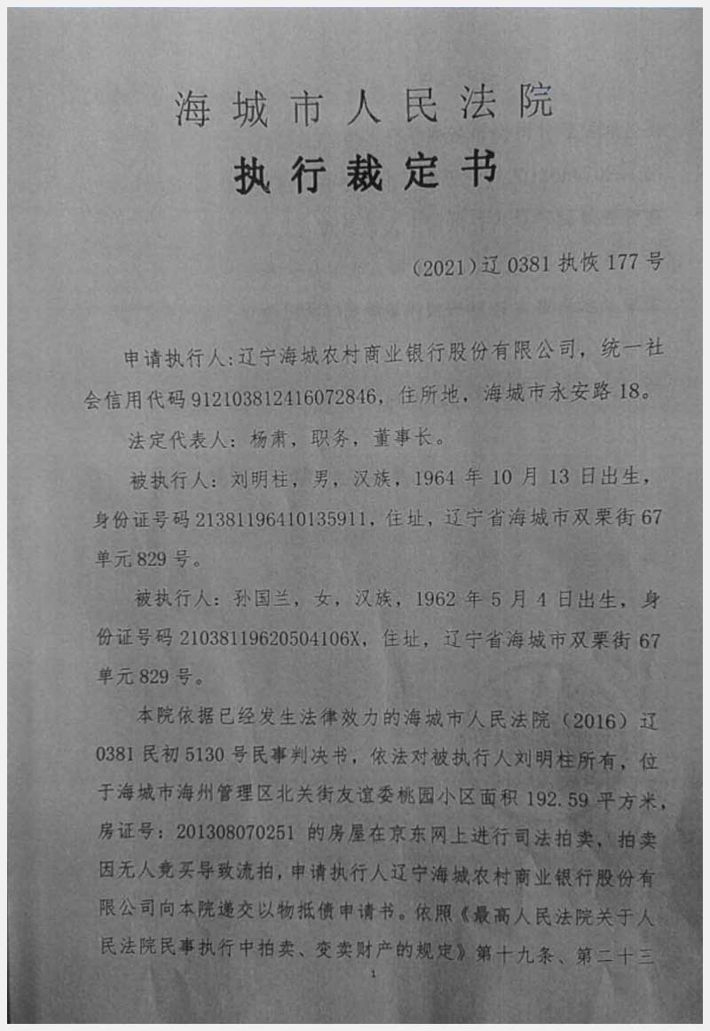 地址:海城市海州管理區北關街友誼委桃園小區 標的號:228