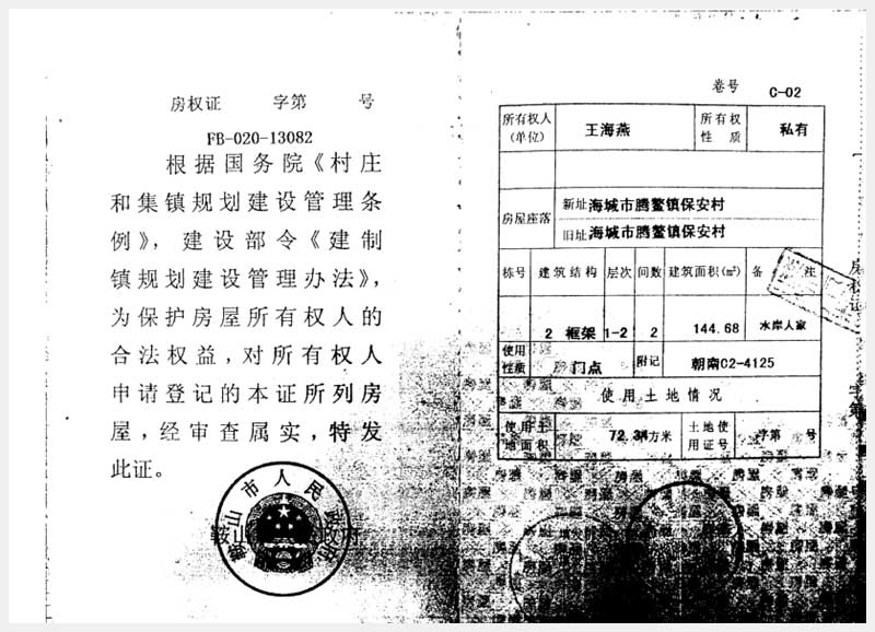 名稱:海城市騰鰲鎮保安村5處房產 面積:141.74㎡、156.30㎡、152.85㎡、158.38㎡、144.68㎡ 瀏覽次數:1206