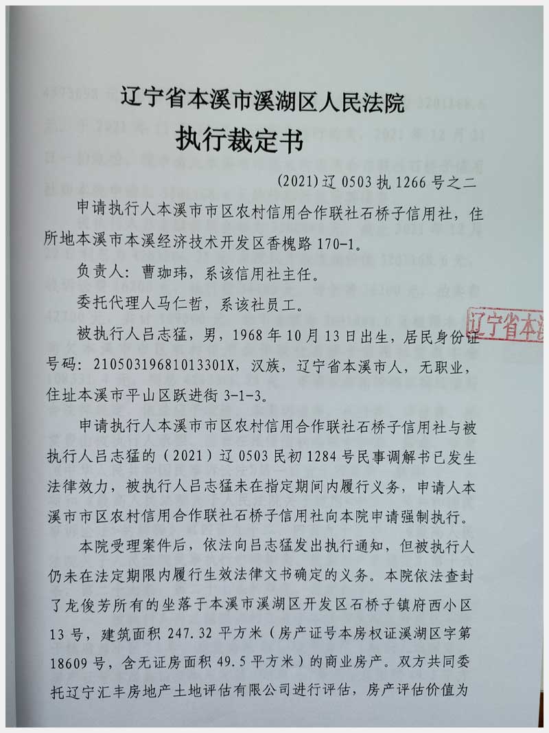 地址:本溪市溪湖區(qū)開發(fā)區(qū)石橋子鎮(zhèn)府西小區(qū)13號(hào) 標(biāo)的號(hào):5
