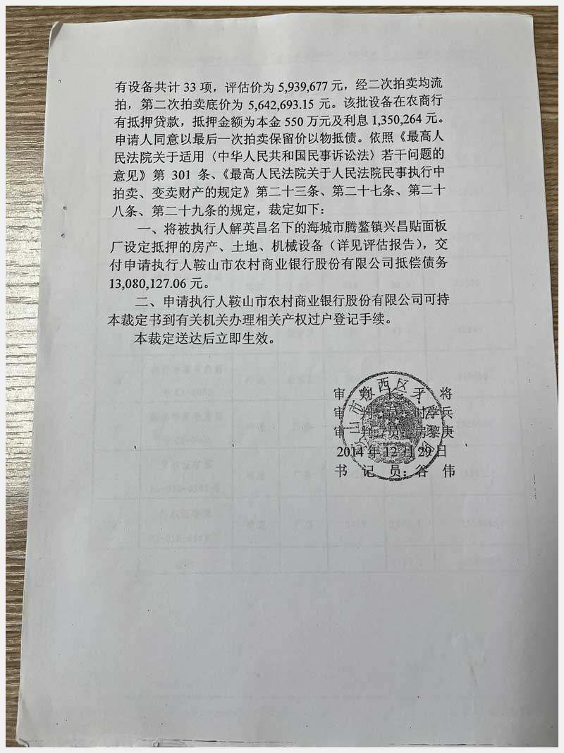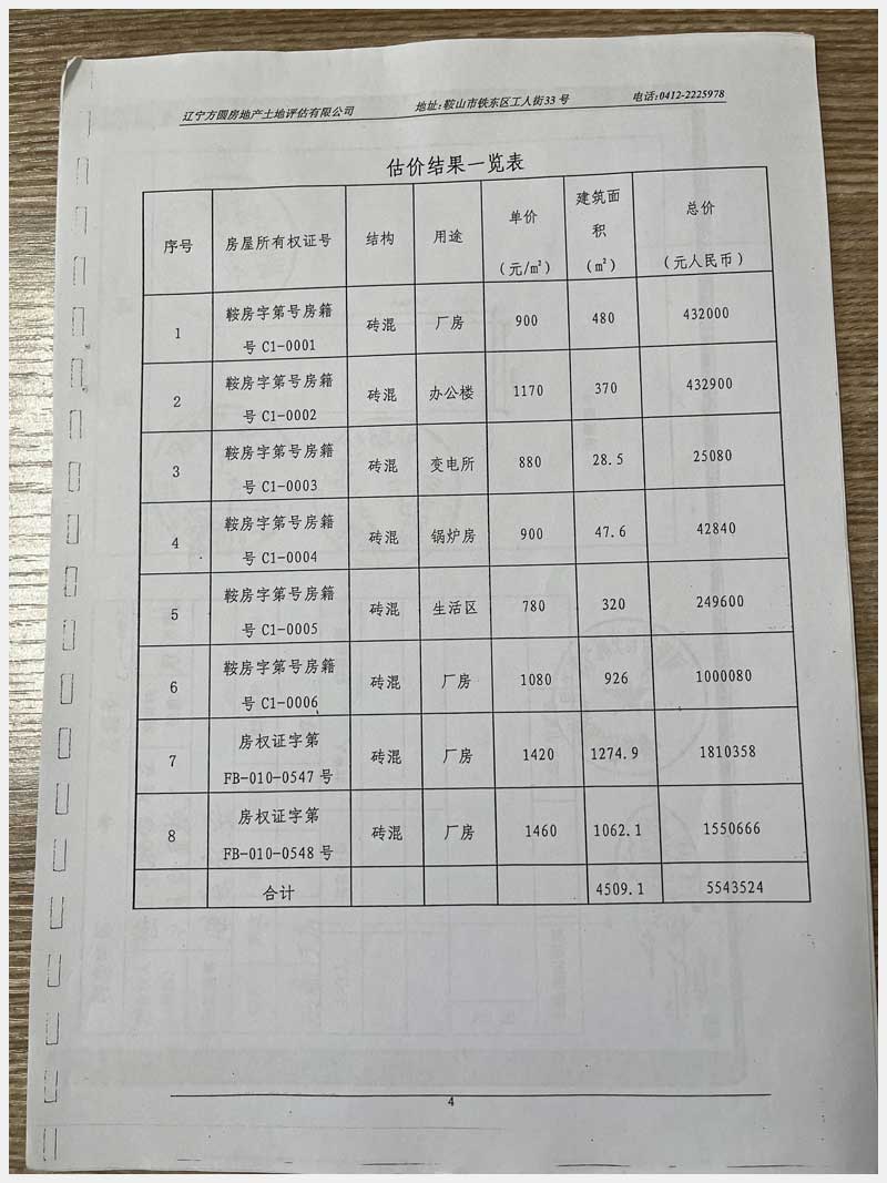 名稱:海城市騰鰲鎮(zhèn)永安路33號房產(chǎn)、土地使用權(quán)及機器設(shè)備 面積:房產(chǎn):4509㎡;土地:9917㎡;設(shè)備:46臺(套) 瀏覽次數(shù):1102