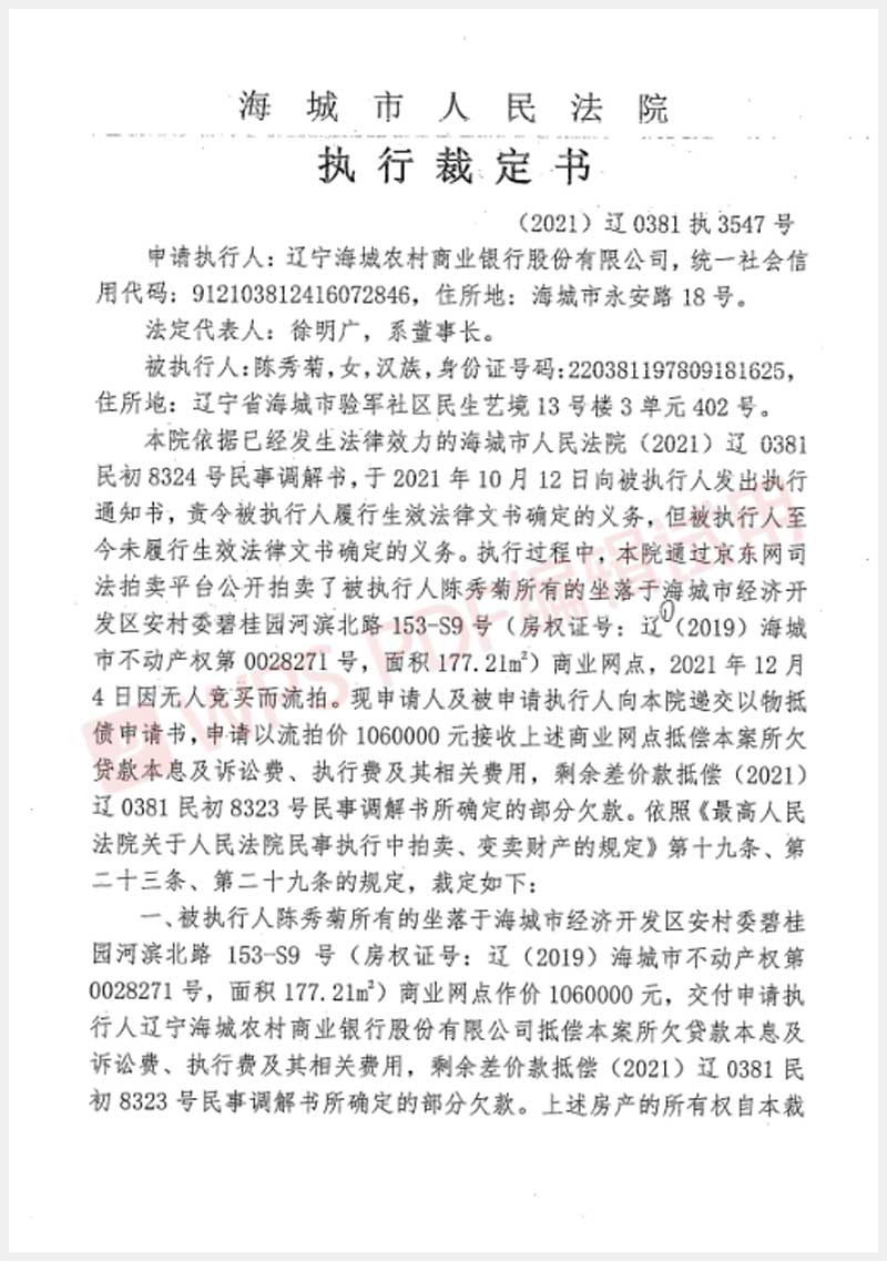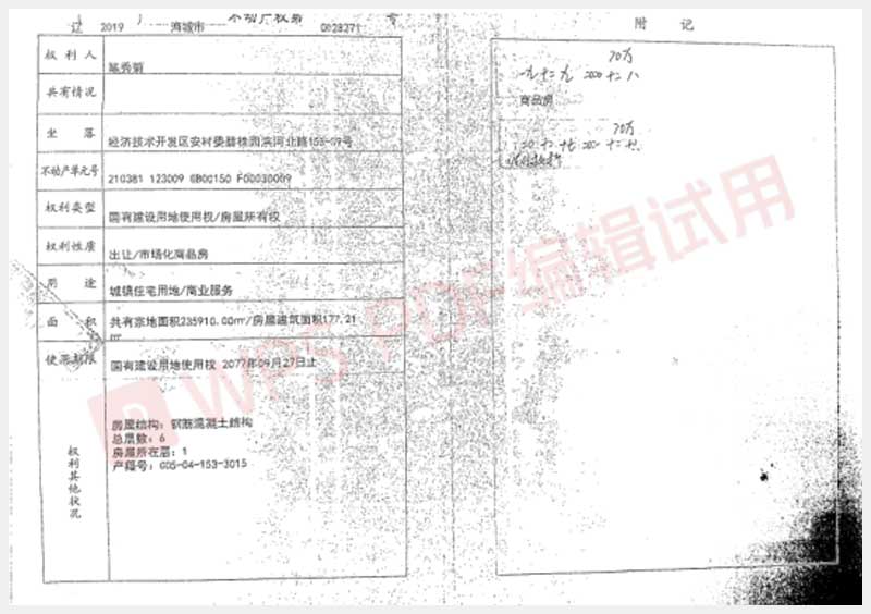 地址:海城經濟技術開發區安村委碧桂園濱河北路153-S9號 標的號:236
