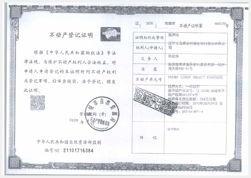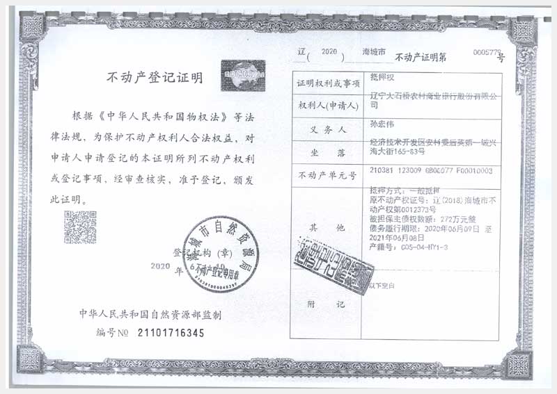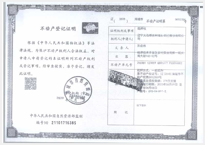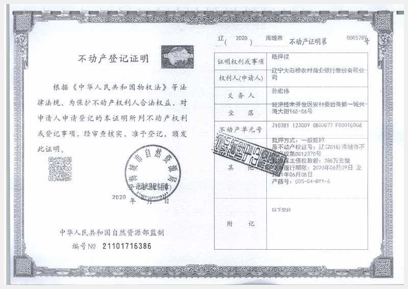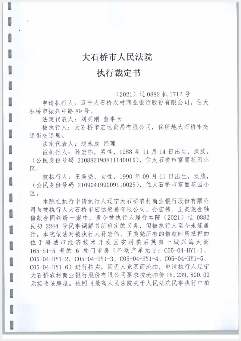 地址:海城市經濟技術開發區安村委后英第一城 標的號:16