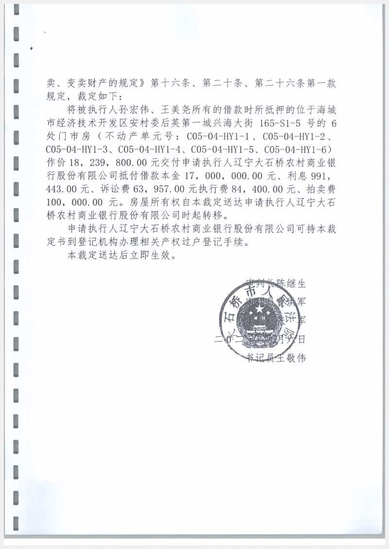 16號 海城市經濟技術開發區安村委后英第一城興海大街165-S1-6號6處房產