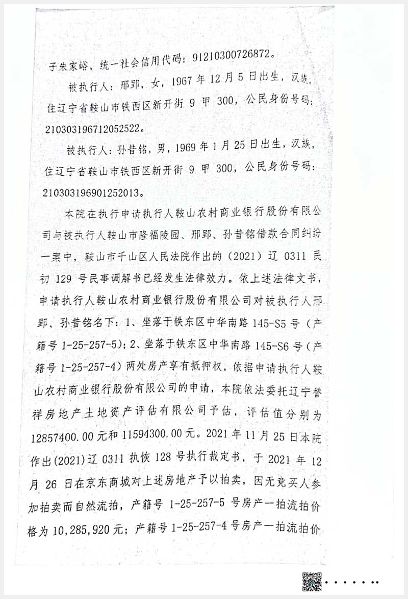 100號 鞍山市鐵東區(qū)中華南路145-S5、145-S6號房產(chǎn)