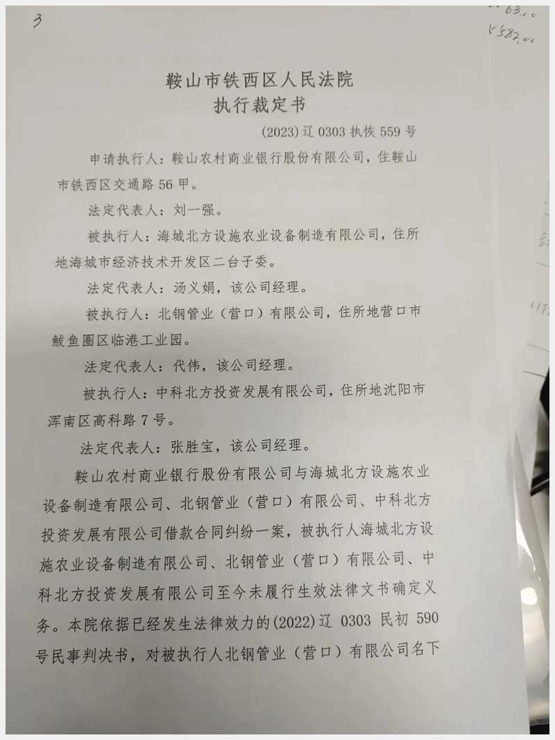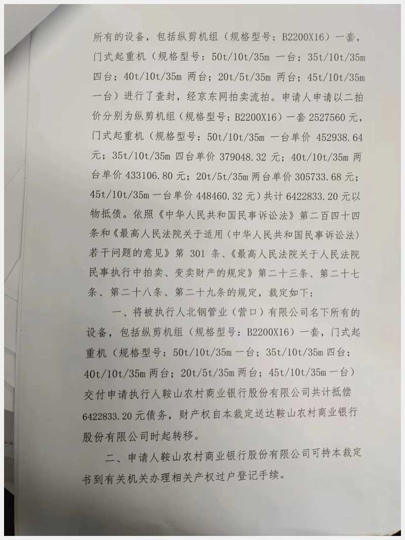101號 北鋼管業(yè)(營口)有限公司所屬的機(jī)器設(shè)備