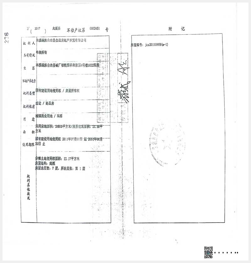 148-5號 本溪滿族自治縣堿廠鎮糧庫祥和家園4號樓1032車庫