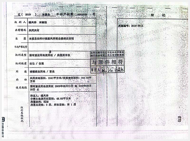 152號 本溪滿族自治縣田師付鎮潘鳳祥商業樓酒店賓館