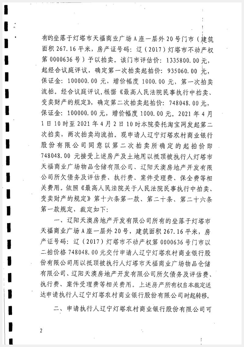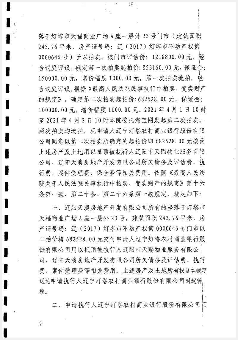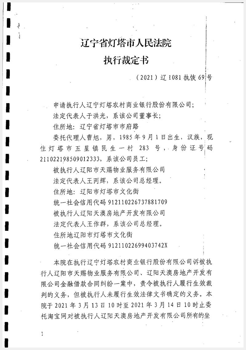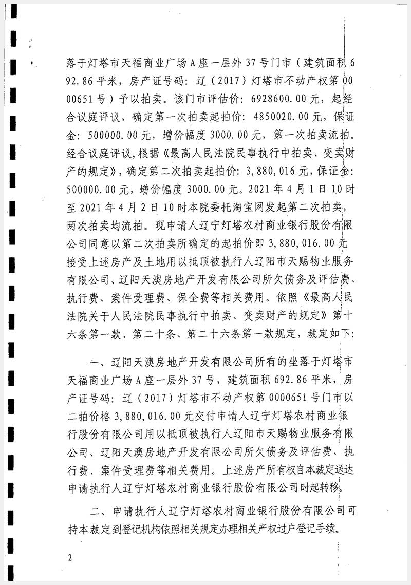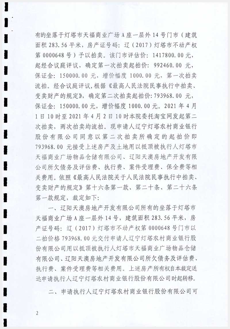 名稱:遼陽市燈塔市天福商業廣場A座房產 面積:692.86㎡ 瀏覽次數:323