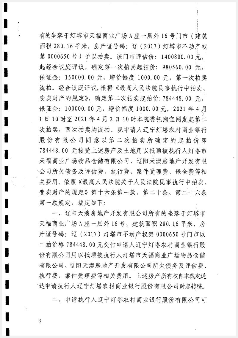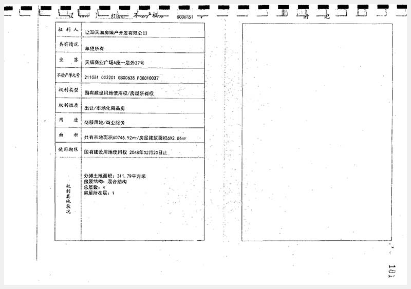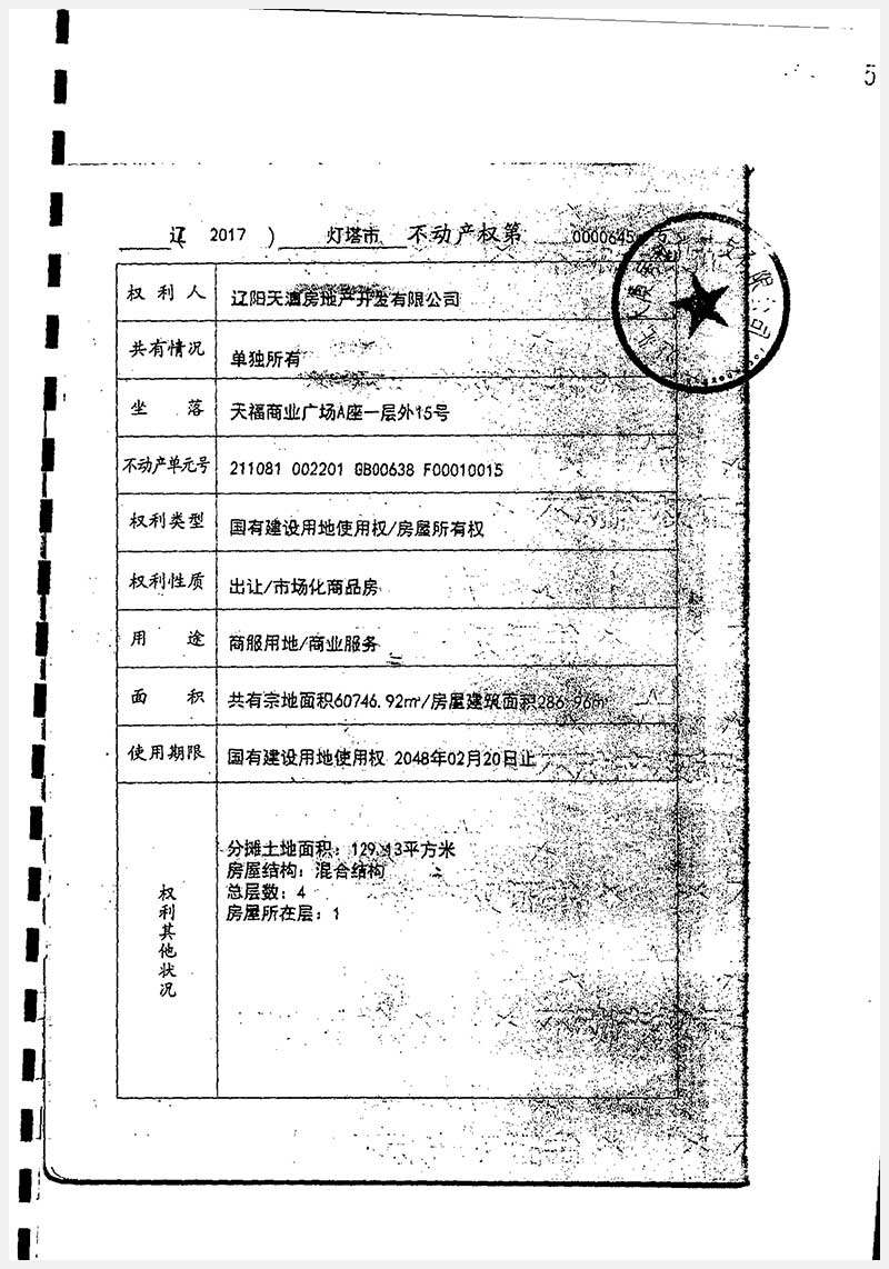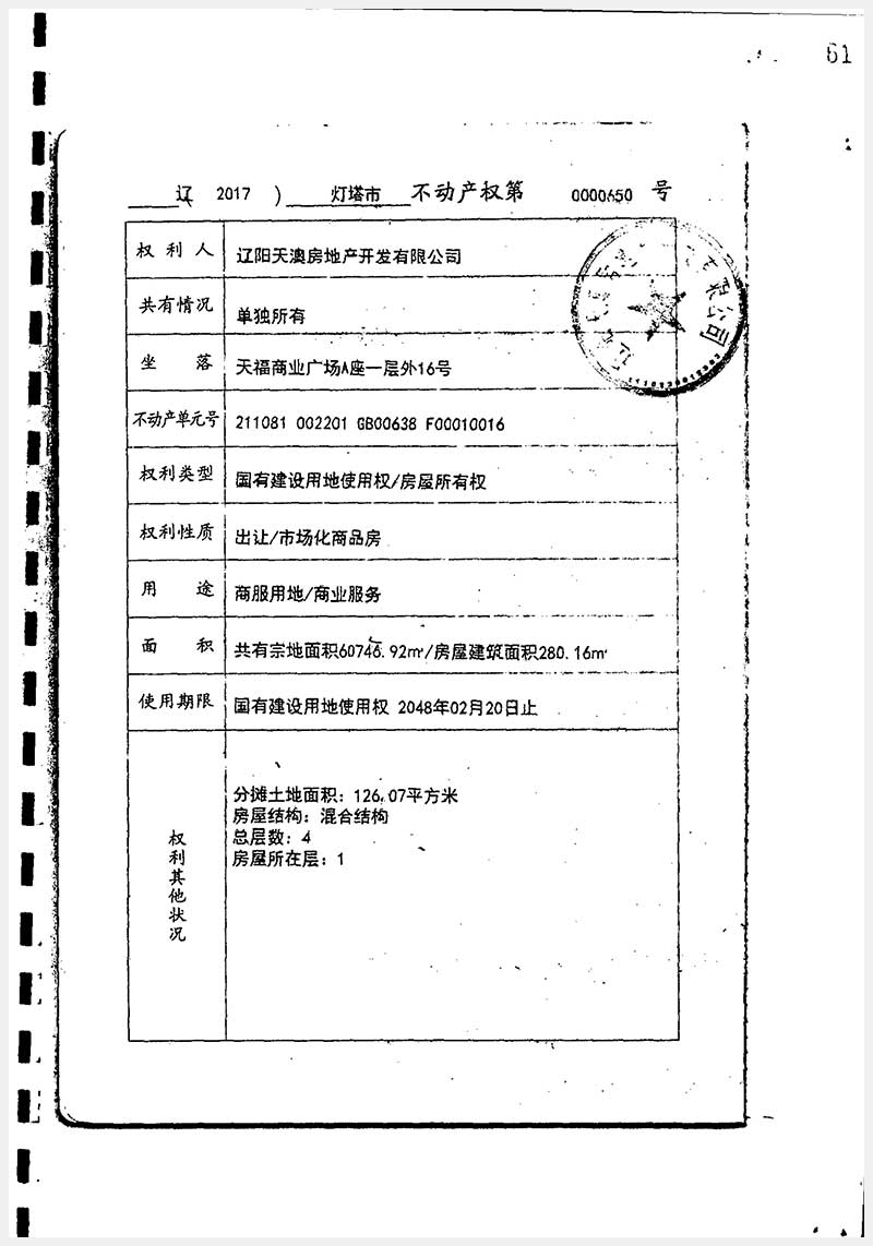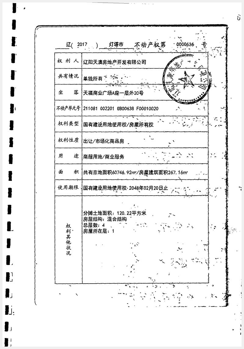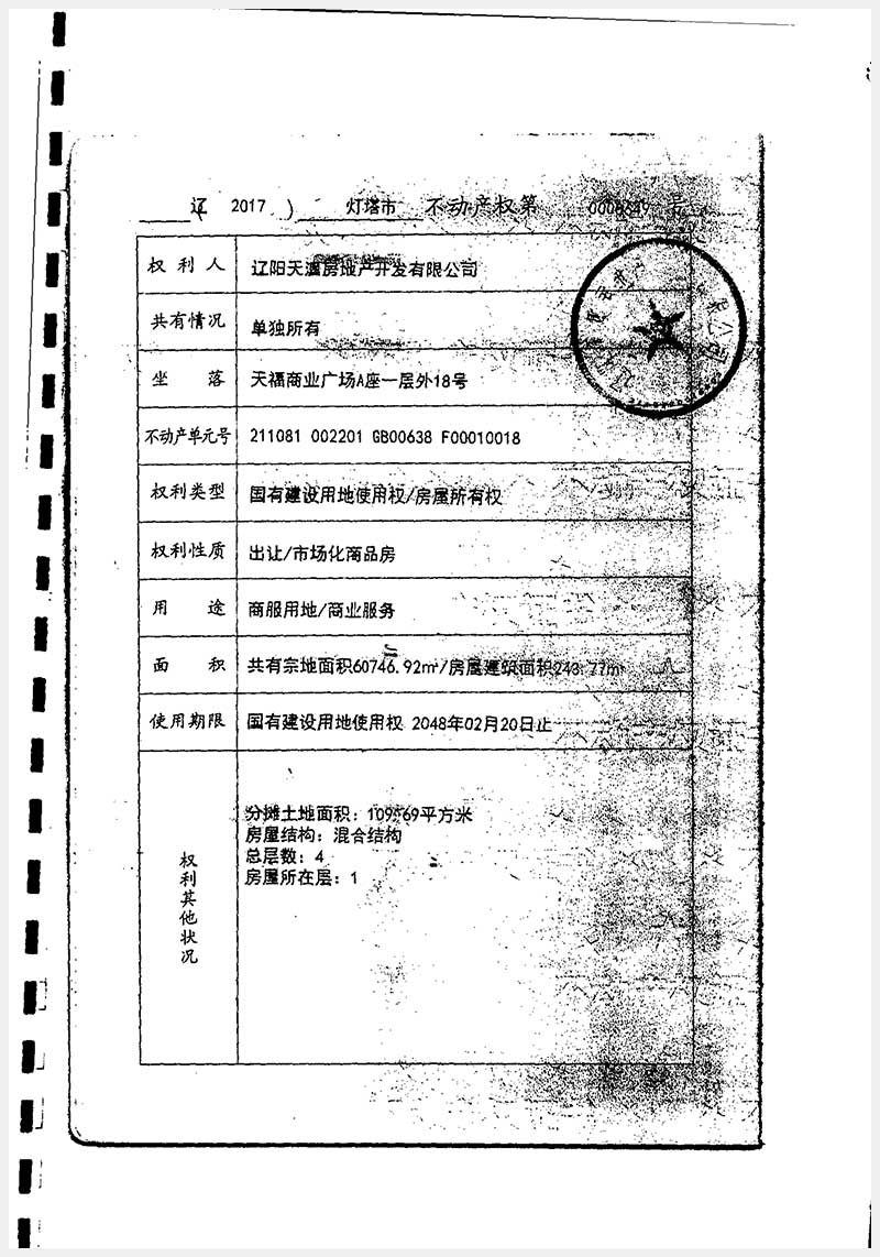 37號 遼陽市燈塔市天福商業廣場A座房產