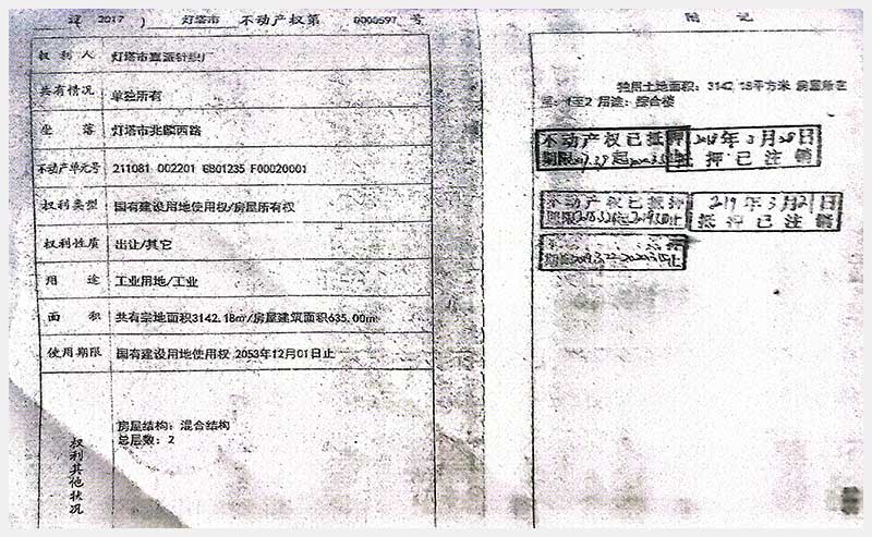 名稱:燈塔市兆麟西路廠房及土地使用權 面積:房產:1235㎡;土地:3142.18㎡ 瀏覽次數:301