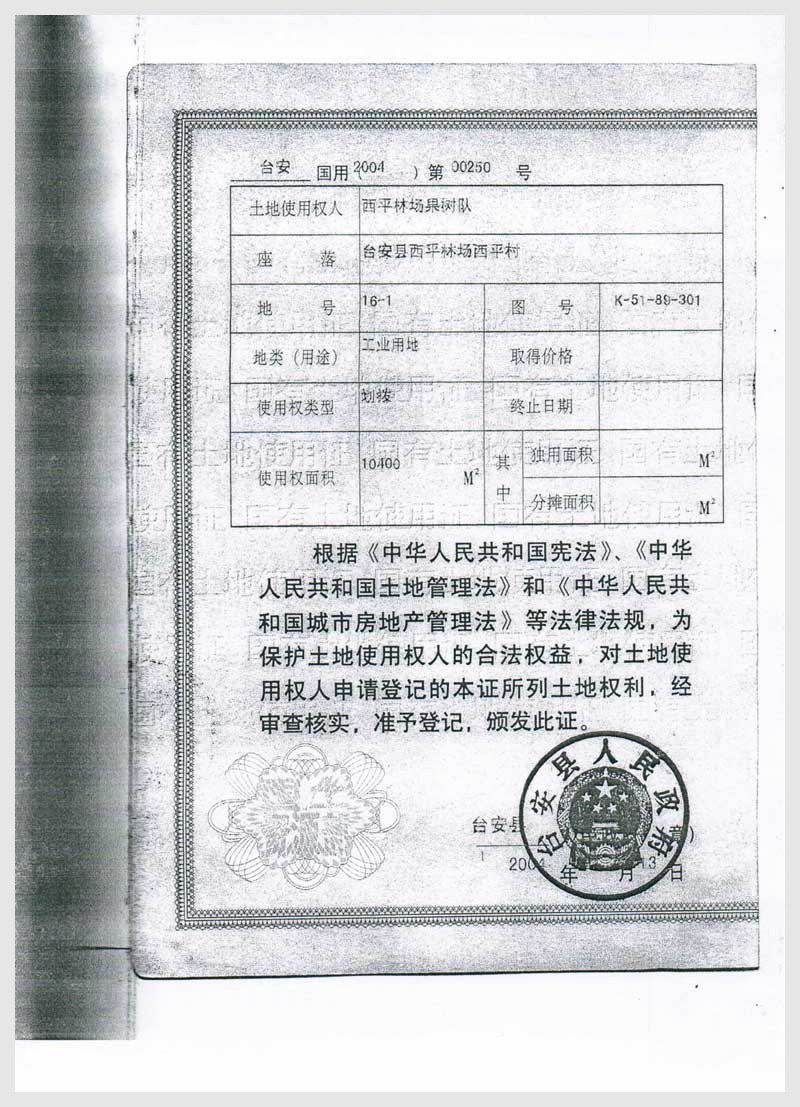 名稱:臺安縣西平林場北果園房產及土地使用權 面積:房產:2636㎡、土地:10400㎡ 瀏覽次數:2921