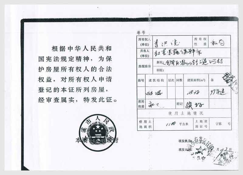 1號 本溪市紅星果蔬保鮮庫所有的庫房及國有土地使用權