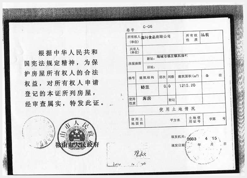 30號 鑫利食品所屬的位于感王鎮(zhèn)東廟村的房產及土地使用權