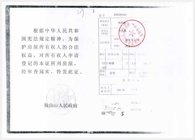 名稱:鞍山市騰鰲鎮保安村房產 面積:145.08㎡ 瀏覽次數:2665