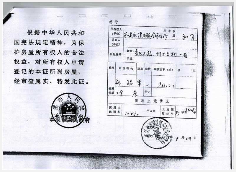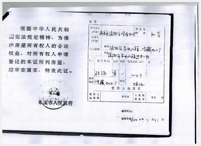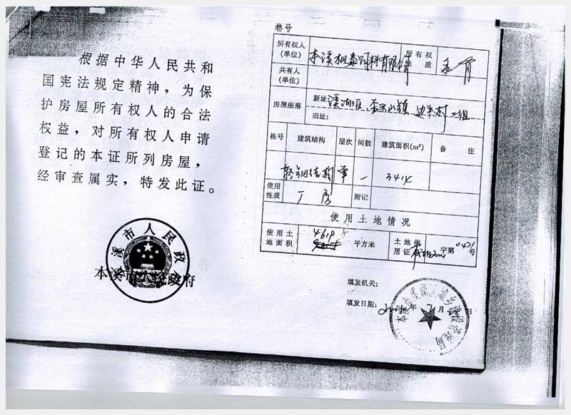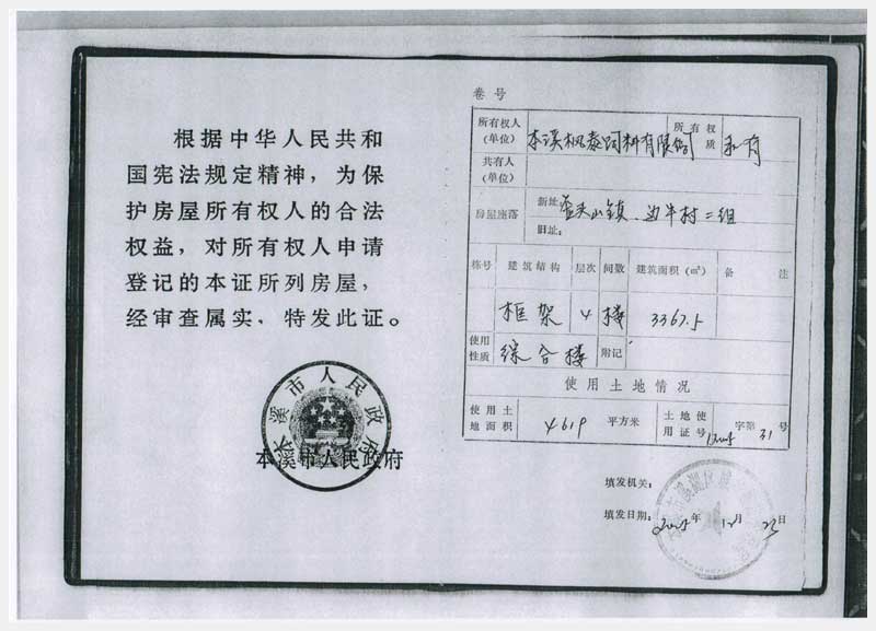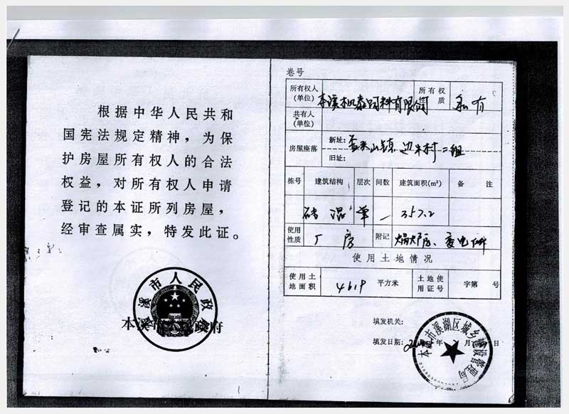 20號 本溪市溪湖區歪頭山鎮邊牛村房產、土地及機器設備